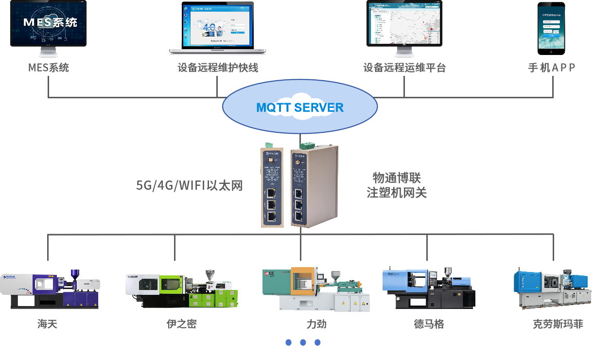 物通博聯(lián)注塑機網(wǎng)關(guān)是一款針對注塑機實現(xiàn)數(shù)據(jù)采集的設(shè)備,主要用于解決注塑機等傳統(tǒng)生產(chǎn)設(shè)備的數(shù)據(jù)采集、遠程監(jiān)控和信息化管理問題,網(wǎng)關(guān)支持各種注塑機的私有協(xié)議和其他工業(yè)標(biāo)準(zhǔn)協(xié)議(弘訊、科強、KEBA、恩格爾、住友、日精……),可以實現(xiàn)各種注塑機設(shè)備聯(lián)網(wǎng)、數(shù)據(jù)采集,實時傳輸注塑機注射壓力、油溫、模具溫度、注射速度等數(shù)據(jù)到本地服務(wù)器、云平臺、MES、ERP等等,為制造業(yè)數(shù)字化轉(zhuǎn)型提供了強大支持。