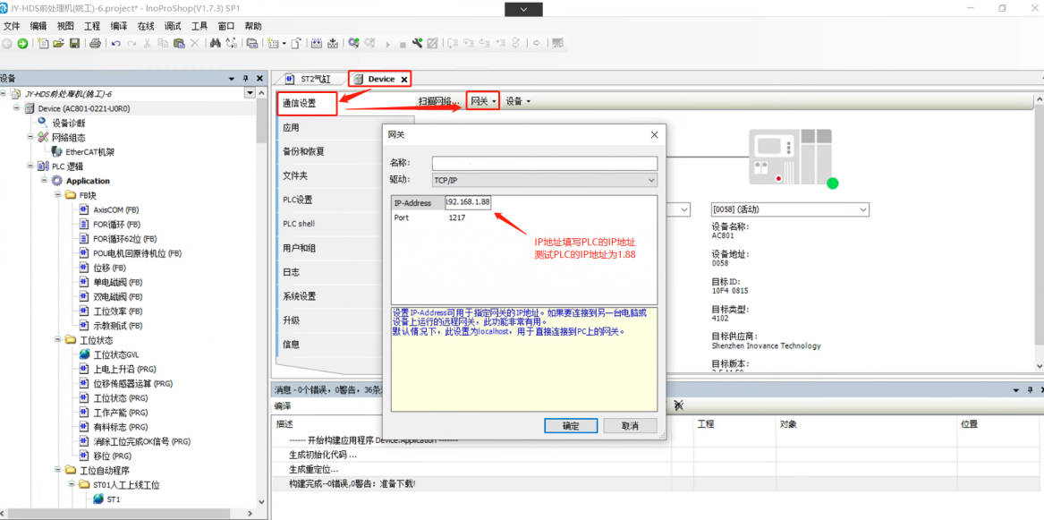 1、建立通道后,打開InoProShop ,根據(jù)連接的AM600型號(hào)全稱,選擇工程型號(hào)。