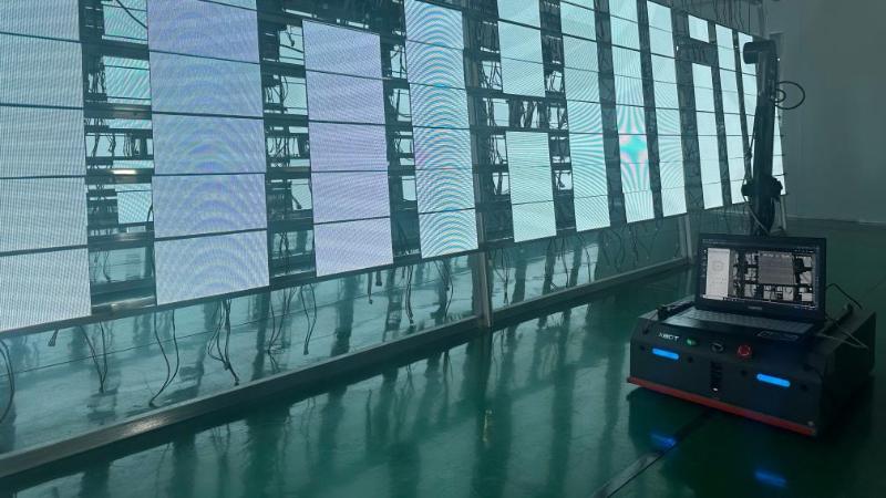 鑫彩晨光電科技有限公司,無(wú)人AGV小車正在巡檢。