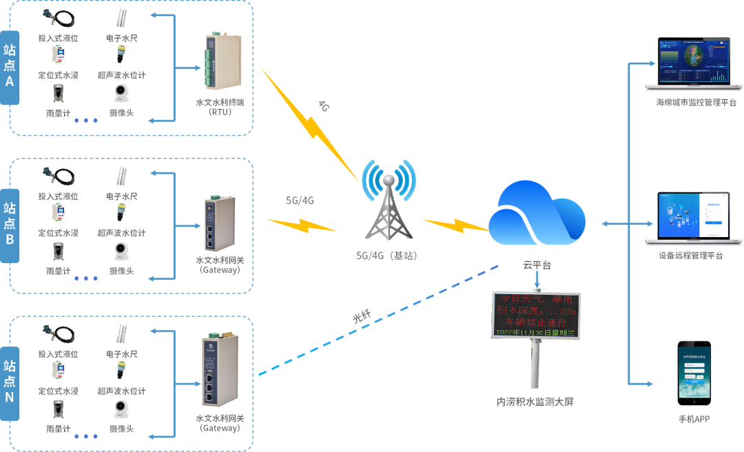 物聯(lián)網(wǎng)網(wǎng)關(guān)接入城市各易澇點(diǎn)的積水傳感器、雨量計(jì)等設(shè)備,實(shí)時(shí)采集關(guān)鍵數(shù)據(jù)(包括積水深度、積水上漲速率、實(shí)時(shí)降雨量、周邊環(huán)境溫濕度等),并借助5G/4G/以太網(wǎng)網(wǎng)絡(luò)將數(shù)據(jù)上傳至內(nèi)澇積水監(jiān)管平臺(tái),能夠?qū)崿F(xiàn)對(duì)內(nèi)澇積水的動(dòng)態(tài)監(jiān)測(cè)、異常識(shí)別、自動(dòng)告警及數(shù)據(jù)追溯,有助于提升城市內(nèi)澇防控的響應(yīng)速度與精準(zhǔn)性,確保防汛工作的及時(shí)性與有效性。