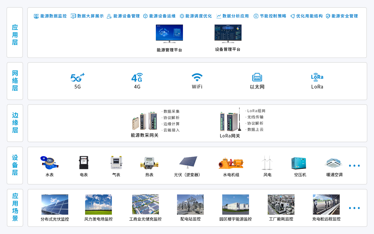 適用于工廠(chǎng)、園區(qū)、小區(qū)、電力、樓宇、公共設(shè)施等多種用能場(chǎng)景。